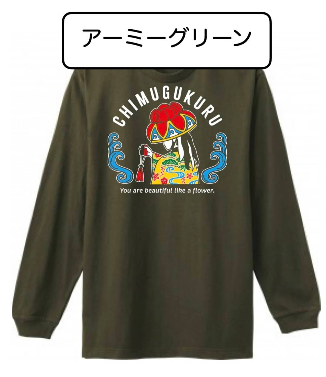 「あなたは花のように美しい」というメッセージと共にフルカラーの花笠イラストがはいった長袖Tシャツ。