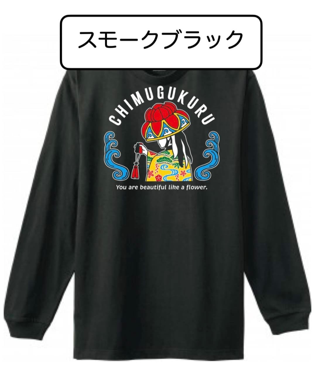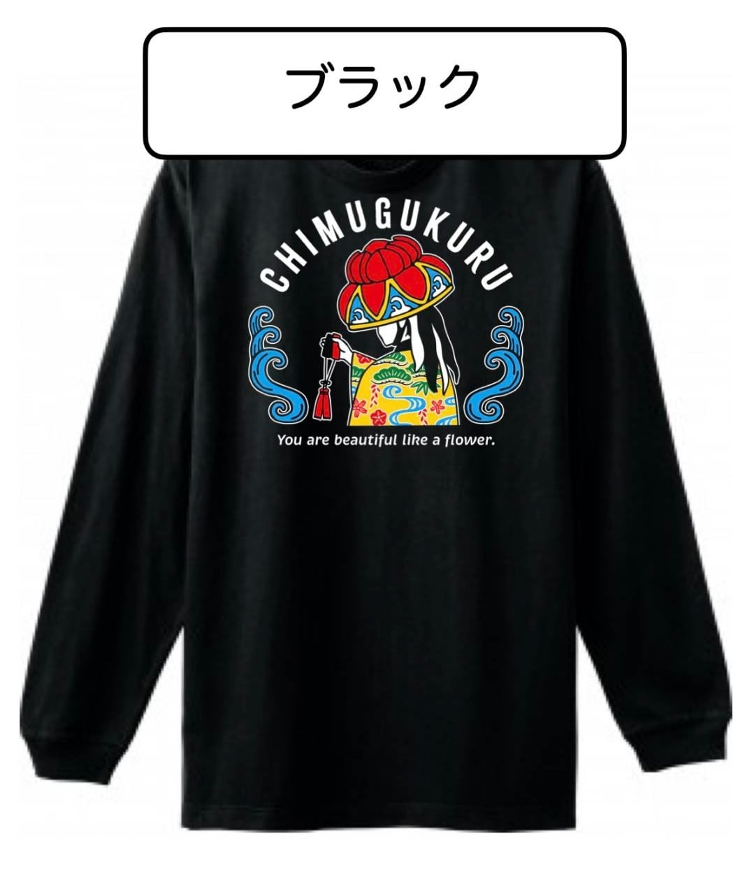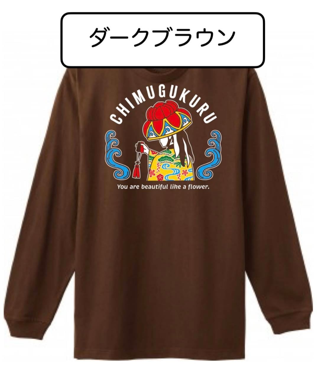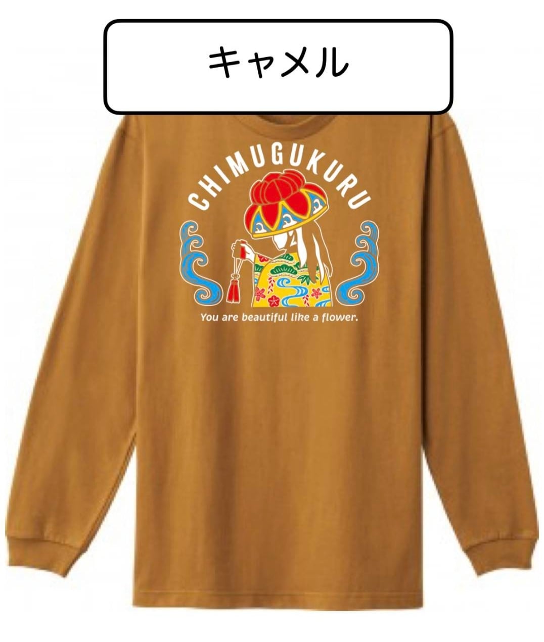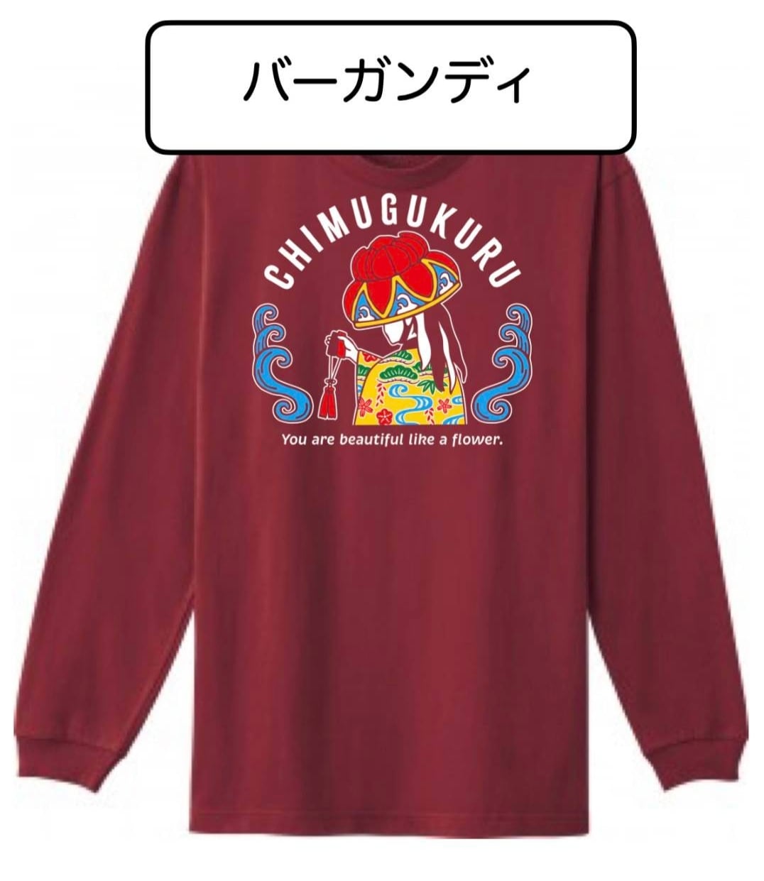 「あなたは花のように美しい」というメッセージと共にフルカラーの花笠イラストがはいった長袖Tシャツ。